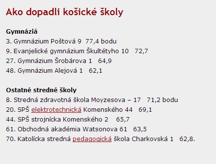 Viac čítajte na: http://kosice.korzar.sme.sk/c/6761002/najlepsou-strednou-skolou-v-kosiciach-je-gymnazium-postova.html a na http://www.sme.sk/c/6755527/ktore-stredne-skoly-su-najlepsie-pozrite-si-mapu.html